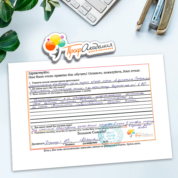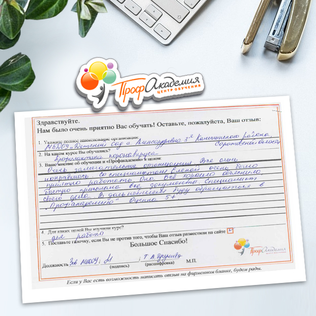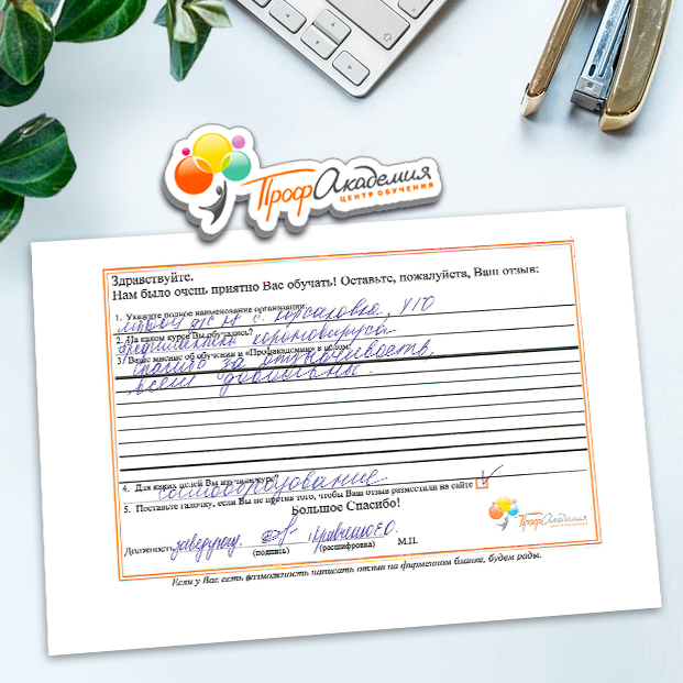 Очень замечательная организация. Все очень понравилось. Со специалистом Еленой очень было приятно работать. Она все хорошо объяснила, быстро прислала все документы. Специалист своего дела. В дальнейшем буду обращаться в "Профакадемию" Оценка 5+