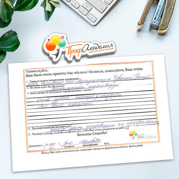 После успешного окончания обучения вы получите документы установленного образца. Высылаем по почте заказным письмом.
